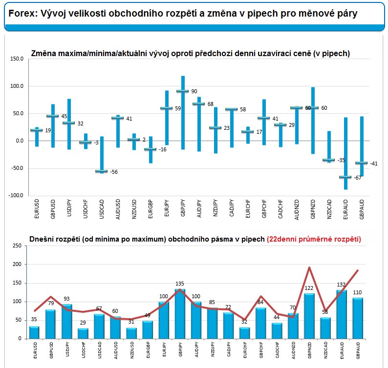 Forex: Vítězové a poražení 4.2.2021 Většina měnových párů se dnes nachází pod svým 22denním průměrným rozpětím. Svůj průměr mírně překračují pouze měnové páry EUR/GBP, GBP/CHF a GBP/AUD.