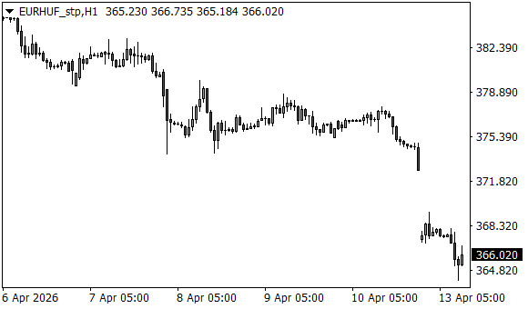 Vývoj měnového páru EUR/HUF (1hodinový graf - H1):