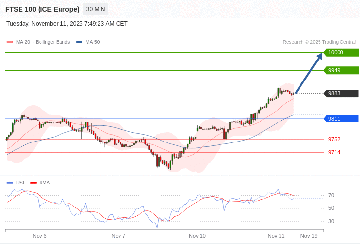 FTSE 100 - Intradenní výhled 11.11.2025