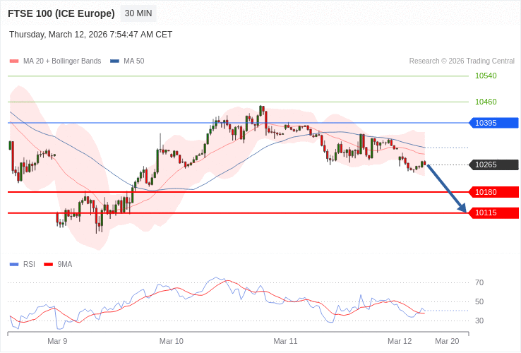 FTSE 100 - Intradenní výhled 12.3.2026