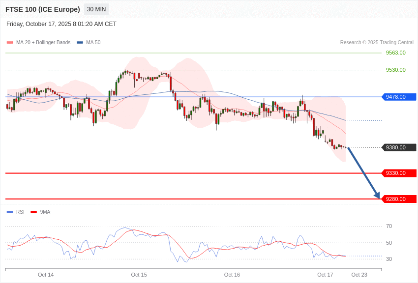 Klíčová slova: Intradenní výhled | Indikátor | Pozice | RSI | Rezistence | Short | Trading | FTSE | Pivot | Trading Central | Supporty a rezistence | FTSE 100 | Výhled | Krátké (short) pozice | Pokles | Medvědi | Indikátor RSI | Další pokles | Růst | Supporty |