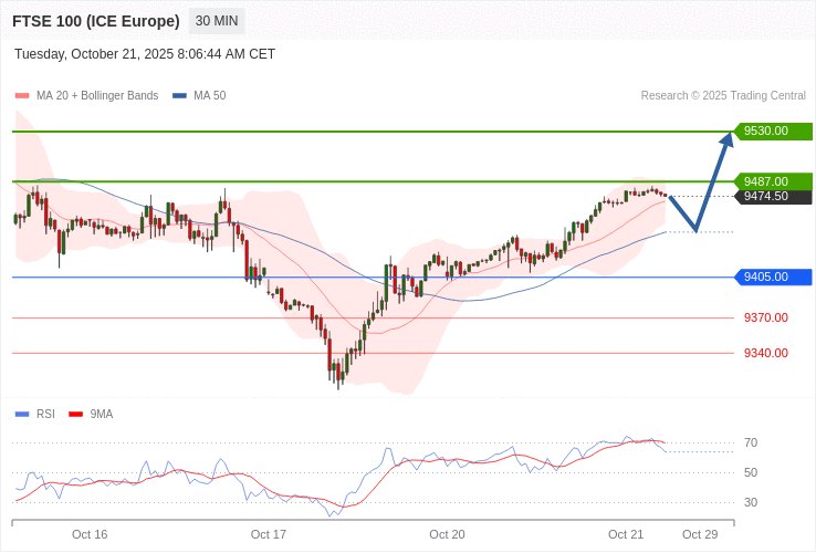 Klíčová slova: Intradenní výhled | Indikátor | Long | Pozice | RSI | Rezistence | Trading | FTSE | Pivot | Trading Central | Supporty a rezistence | FTSE 100 | Výhled | Pokles | Indikátor RSI | Další růst | Růst | Dlouhé (long) pozice | Supporty |