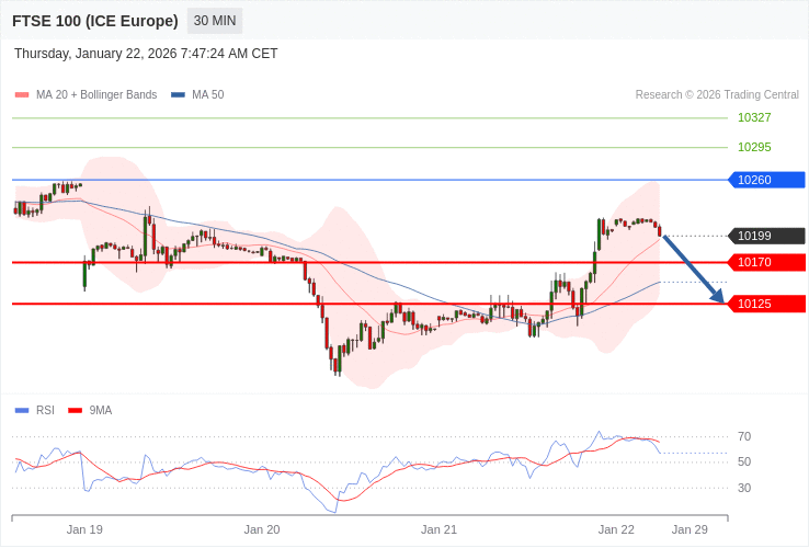 Klíčová slova: Intradenní výhled | Akciový index | Index FTSE 100 | Pozice | Rezistence | Short | Trading | FTSE | Index | Pivot | Trading Central | Supporty a rezistence | FTSE 100 | Výhled | Krátké (short) pozice | Růst | Supporty |