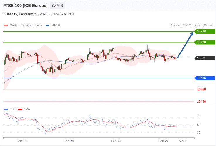 Klíčová slova: Intradenní výhled | Konsolidace | Long | Pozice | Rezistence | Trading | FTSE | Pivot | Trading Central | Supporty a rezistence | FTSE 100 | Výhled | Pokles | Dlouhé (long) pozice | Supporty |