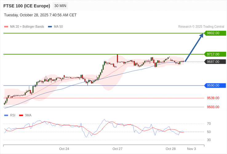 Klíčová slova: Intradenní výhled | Konsolidace | Long | Pozice | Rezistence | Trading | FTSE | Pivot | Trading Central | Supporty a rezistence | FTSE 100 | Výhled | Pokles | Dlouhé (long) pozice | Supporty |