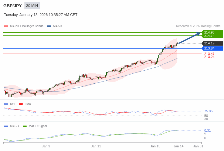 Klíčová slova: Intradenní výhled | GBP/JPY | Indikátor | Long | Pozice | RSI | Rezistence | Trading | JPY | GBP | Pivot | Trading Central | Supporty a rezistence | Výhled | Pokles | Indikátor RSI | Dlouhé (long) pozice | Supporty |