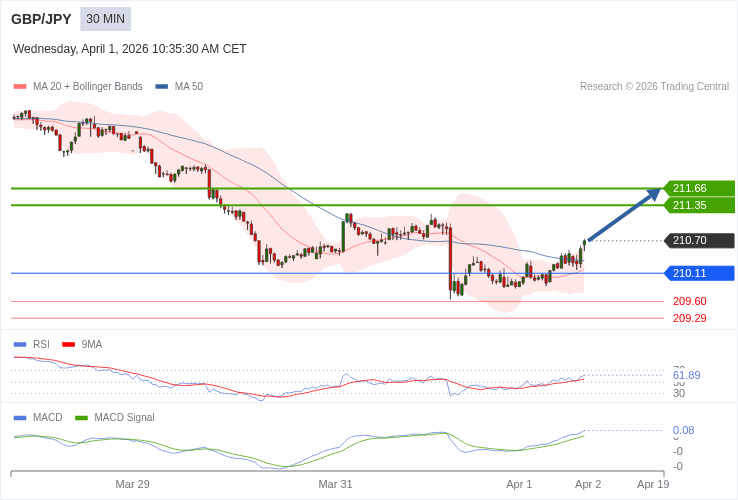 Klíčová slova: Intradenní výhled | GBP/JPY | Indikátor | Long | Pozice | RSI | Rezistence | Trading | JPY | GBP | Pivot | Trading Central | Supporty a rezistence | Výhled | Pokles | Indikátor RSI | Dlouhé (long) pozice | Supporty |