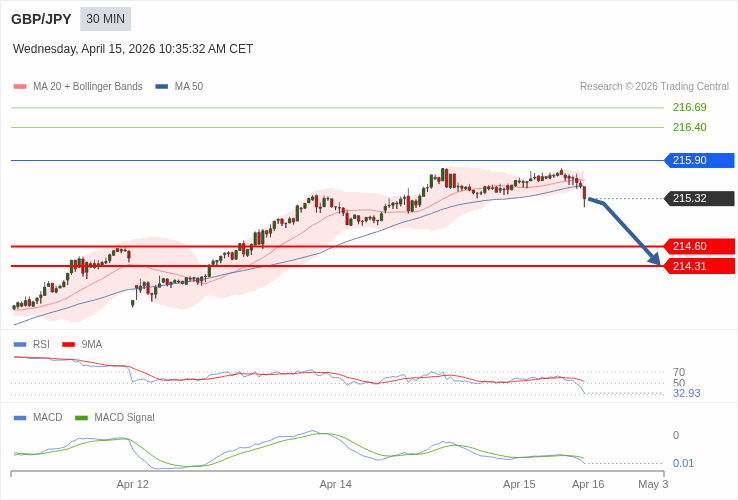 Klíčová slova: Intradenní výhled | GBP/JPY | Indikátor | Pozice | RSI | Rezistence | Short | Trading | JPY | GBP | Pivot | Trading Central | Supporty a rezistence | Výhled | Krátké (short) pozice | Indikátor RSI | Růst | Supporty |