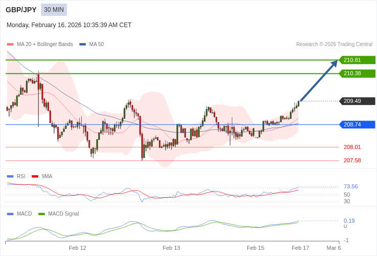 Klíčová slova: Intradenní výhled | GBP/JPY | Indikátor | Long | Pozice | RSI | Rezistence | Trading | JPY | GBP | Pivot | Trading Central | Supporty a rezistence | Výhled | Pokles | Indikátor RSI | Dlouhé (long) pozice | Supporty |
