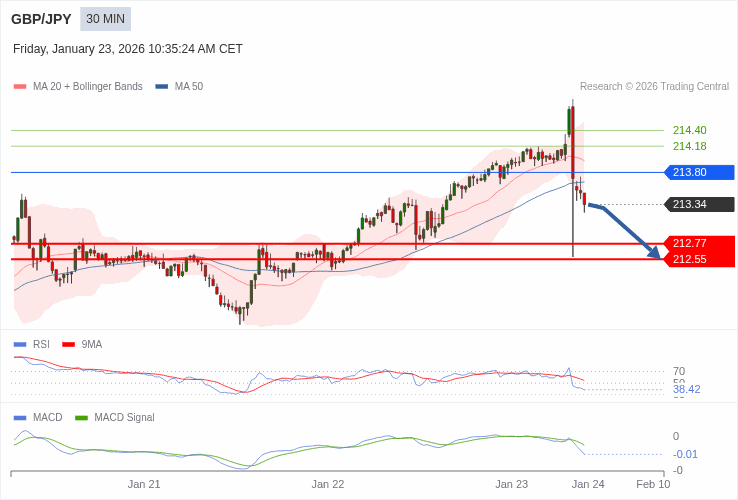 Alternativní scénář: Nad 213,80 je pravděpodobný růst na 214,18 a dále pak až na 214,40.
