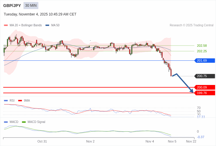 Klíčová slova: Intradenní výhled | GBP/JPY | Indikátor | Pozice | RSI | Rezistence | Short | Trading | JPY | GBP | Pivot | Trading Central | Supporty a rezistence | Výhled | Krátké (short) pozice | Indikátor RSI | Růst | Supporty |