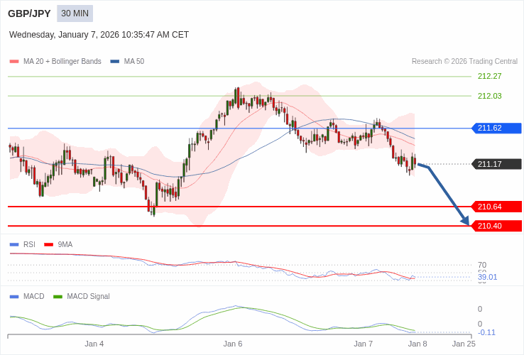 Alternativní scénář: Nad 211,62 je pravděpodobný růst na 212,03 a dále pak až na 212,37.