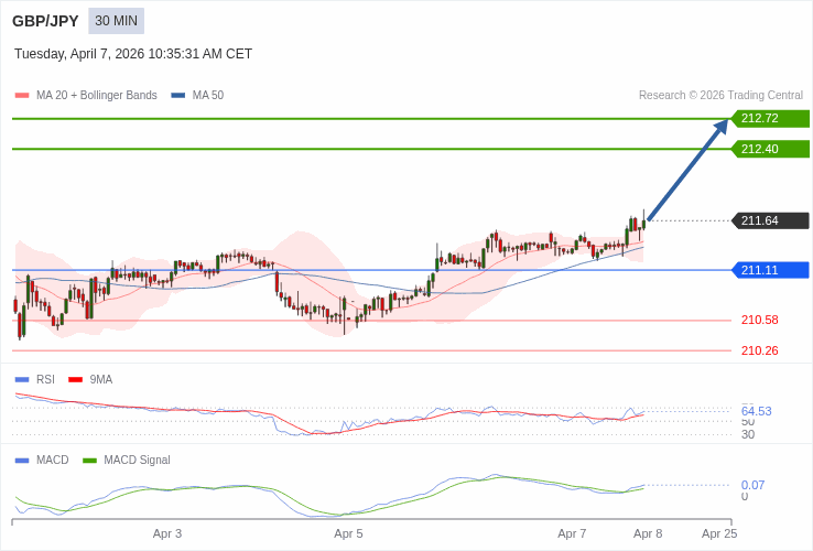 Klíčová slova: Intradenní výhled | GBP/JPY | Indikátor | Long | Pozice | RSI | Rezistence | Trading | JPY | GBP | Pivot | Trading Central | Supporty a rezistence | Výhled | Pokles | Indikátor RSI | Dlouhé (long) pozice | Supporty |
