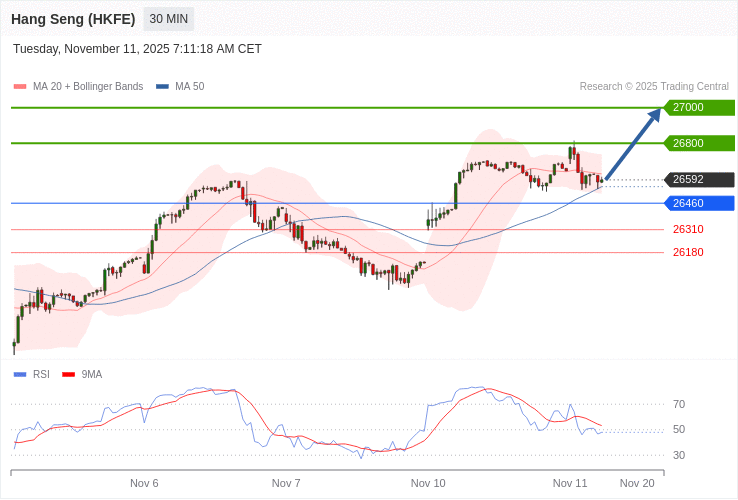 Klíčová slova: Intradenní výhled | Konsolidace | Long | Pozice | Rezistence | Trading | Hang Seng | Pivot | Trading Central | Supporty a rezistence | Výhled | Pokles | Dlouhé (long) pozice | Supporty |