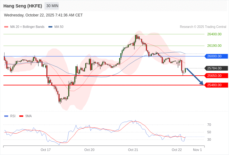 Klíčová slova: Intradenní výhled | Pozice | Rezistence | Short | Trading | Obchodovat | Index | Hang Seng | Index Hang Seng | Pivot | Trading Central | Supporty a rezistence | Výhled | Krátké (short) pozice | Růst | Průraz | Supporty |