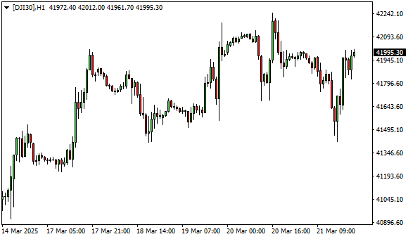 Vývoj akciového Dow Jones (1hodinový graf – H1):
