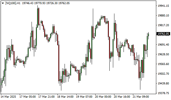 Vývoj akciového NASDAQ 100 (1hodinový graf – H1):