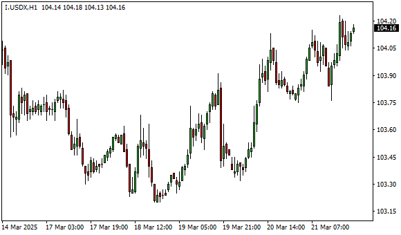 Vývoj dolarového indexu USDX (1hodinový graf - H1):