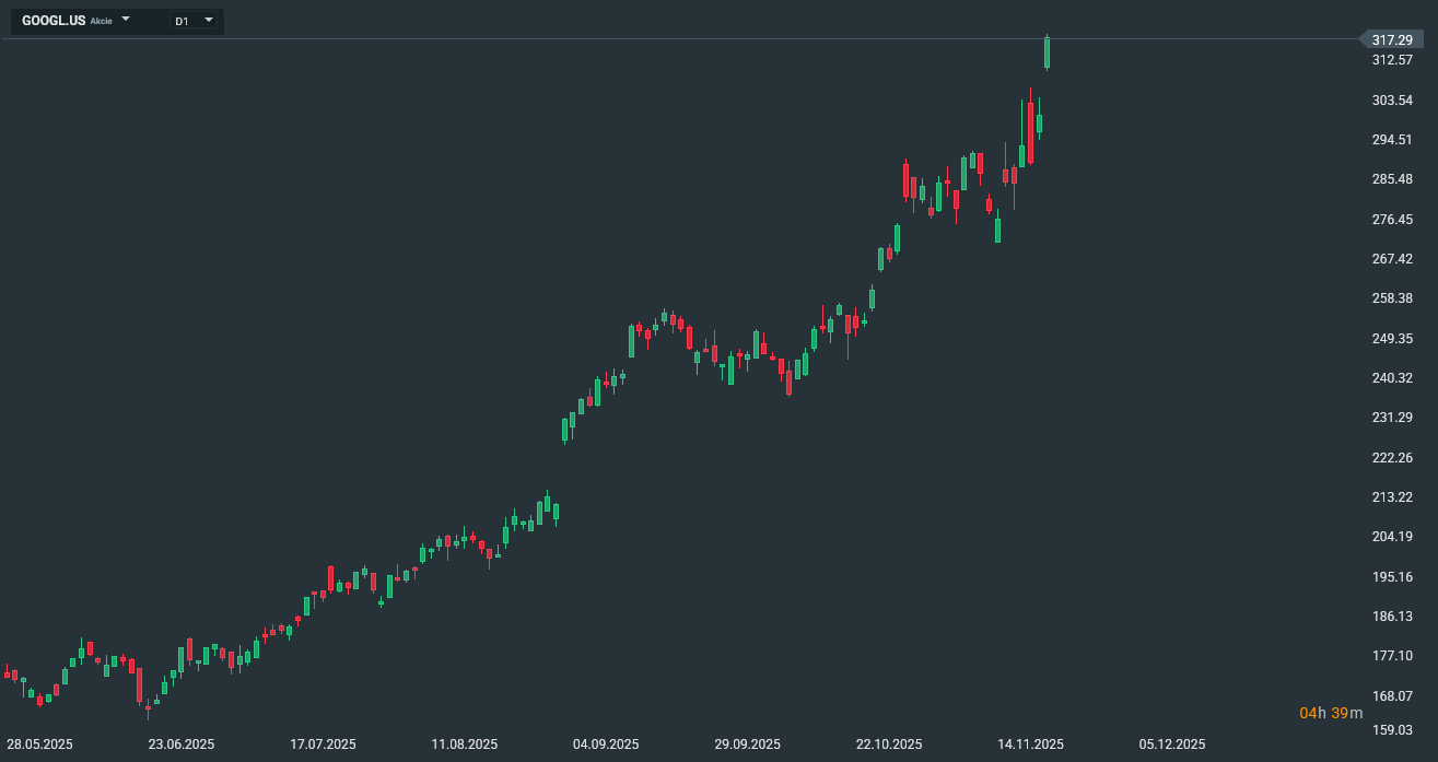 Akcie společnosti dnes mají k dobru více než pět procent a dosáhly rekordní hodnoty 315,90 USD, což Alphabetu vytváří tržní kapitalizaci 3,82 bilionu USD. Akcie letos zatím vzrostly o téměř 70 procent, čímž daleko předčily své konkurenty v oblasti AI, jako je Microsoft a Amazon.