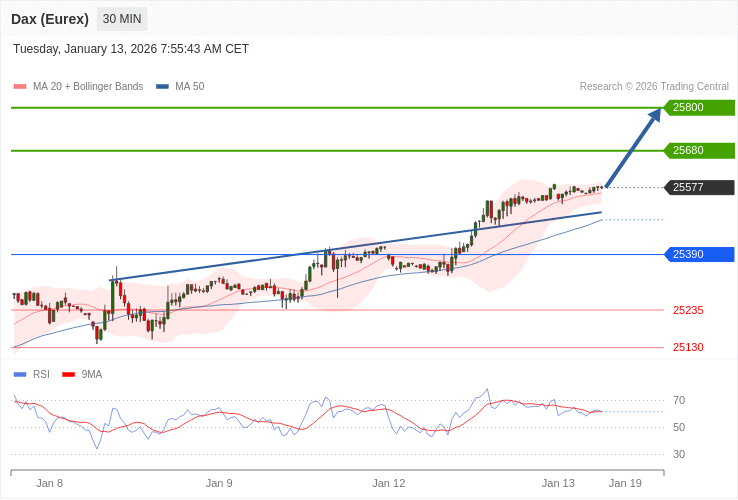 Index DAX (Eurex) (FDAX) - Intradenní výhled 13.1.2026