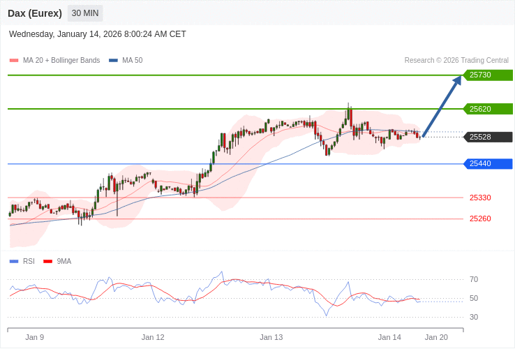 Index DAX (Eurex) (FDAX) - Intradenní výhled 14.1.2026