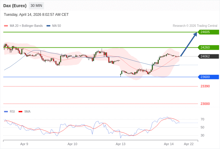 Index DAX (Eurex) (FDAX) - Intradenní výhled 14.4.2026