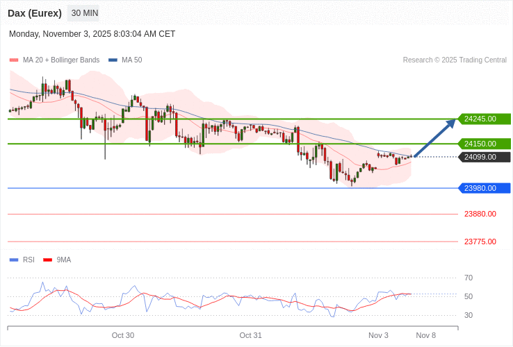 Index DAX (Eurex) (FDAX) - Intradenní výhled 3.11.2025