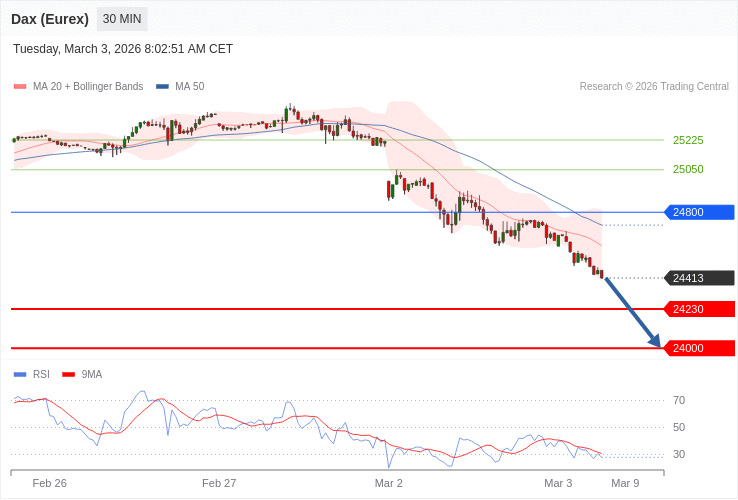 Index DAX (Eurex) (FDAX) - Intradenní výhled 3.3.2026