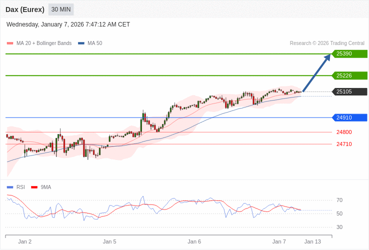 Index DAX (Eurex) (FDAX) - Intradenní výhled 7.1.2026