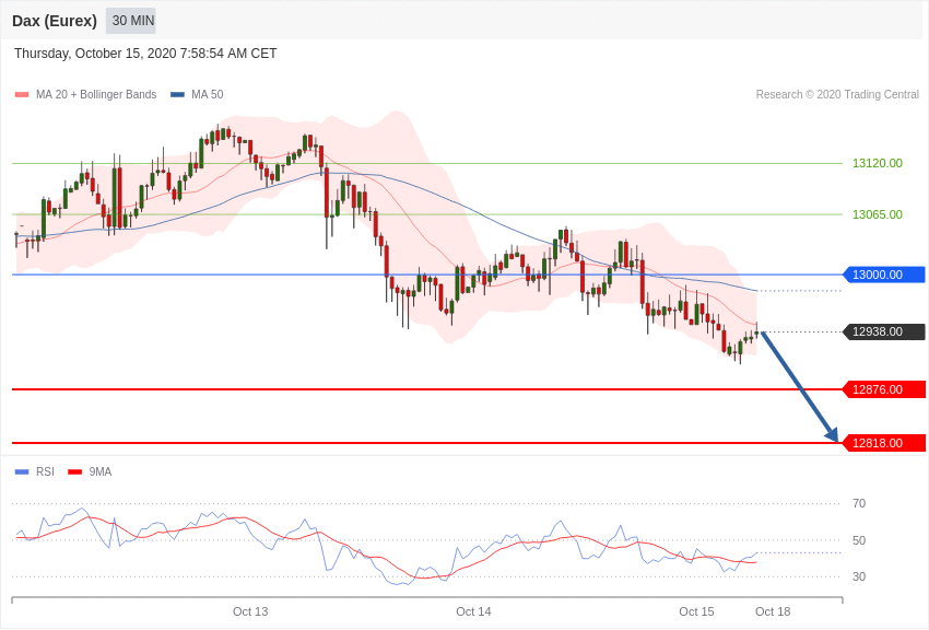 Klíčová slova: Intradenní výhled | DAX | Index DAX | Indikátor | Pozice | RSI | Rezistence | Short | Trading | Index | Pivot | Trading Central | Supporty a rezistence | Výhled | Krátké (short) pozice | Pokles | Medvědi | Indikátor RSI | Další pokles | Růst |