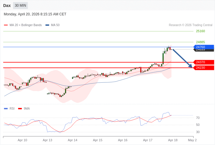 Klíčová slova: Intradenní výhled | DAX | Index DAX | Indikátor | Pozice | RSI | Rezistence | Short | Trading | Index | Pivot | Trading Central | Supporty a rezistence | Výhled | Krátké (short) pozice | Indikátor RSI | Růst | Supporty |