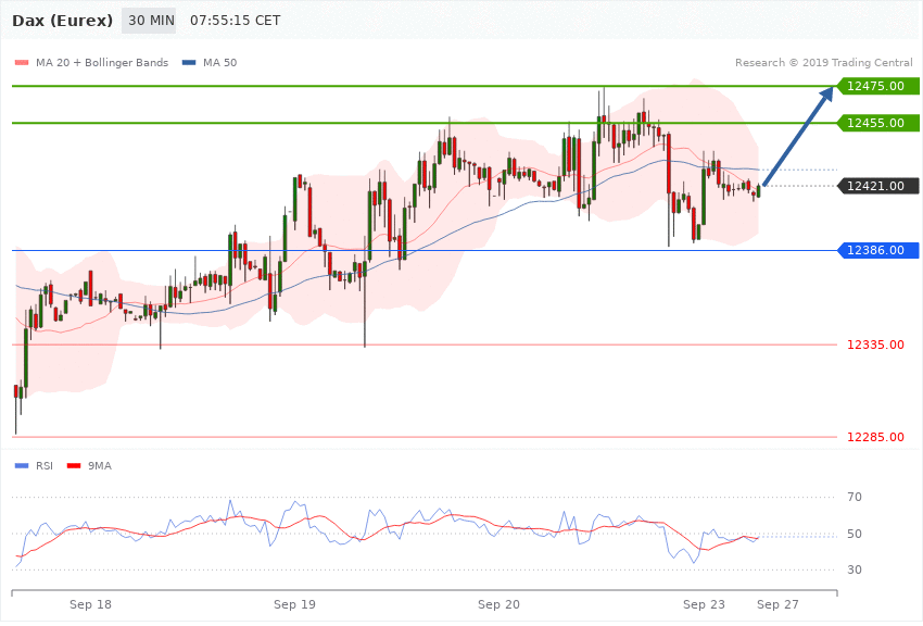 Klíčová slova: Intradenní výhled | DAX | Index DAX | Indikátory | Long | Pozice | Rezistence | Trading | Index | Pivot | Trading Central | Technické indikátory | Supporty a rezistence | Výhled |