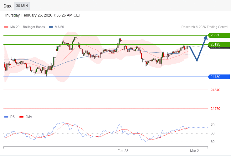Klíčová slova: Intradenní výhled | DAX | Index DAX | Indikátor | Long | Pozice | RSI | Rezistence | Trading | Index | Pivot | Signály | Trading Central | Supporty a rezistence | Výhled | Pokles | Indikátor RSI | Dlouhé (long) pozice | Supporty |