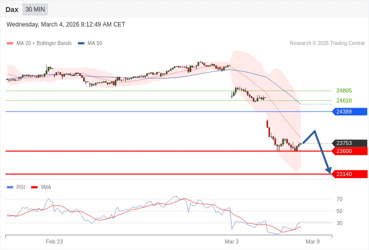 Index DAX - Intradenní výhled 4.3.2026
