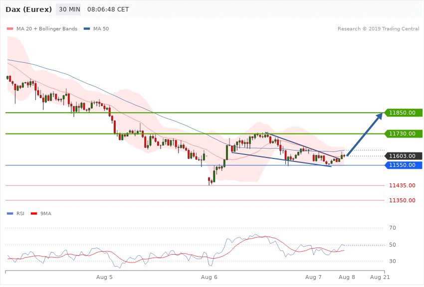 Preferovaný scénář: Dlouhé (long) pozice nad 11 550 s cílem na 11 730 a dále pak až na 11 850.