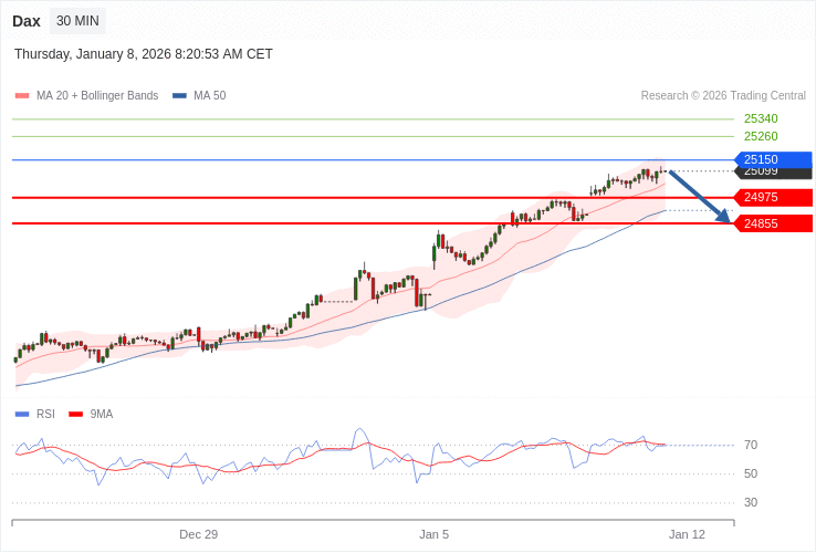 Klíčová slova: Intradenní výhled | DAX | Index DAX | Indikátor | Pozice | RSI | Rezistence | Short | Trading | Index | Pivot | Trading Central | Supporty a rezistence | Výhled | Krátké (short) pozice | Indikátor RSI | Růst | Supporty |