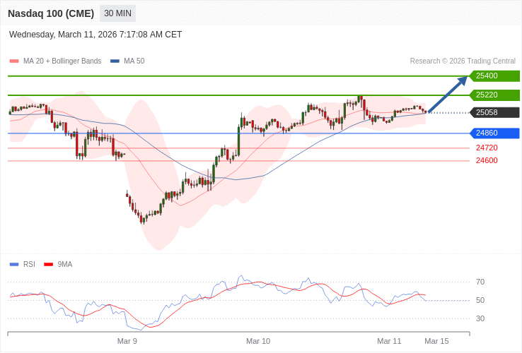 Index NASDAQ 100 (CME) (NQ) - Intradenní výhled 11.3.2026