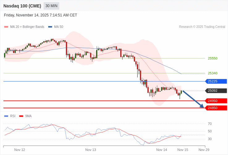 Index NASDAQ 100 (CME) (NQ) - Intradenní výhled 14.11.2025