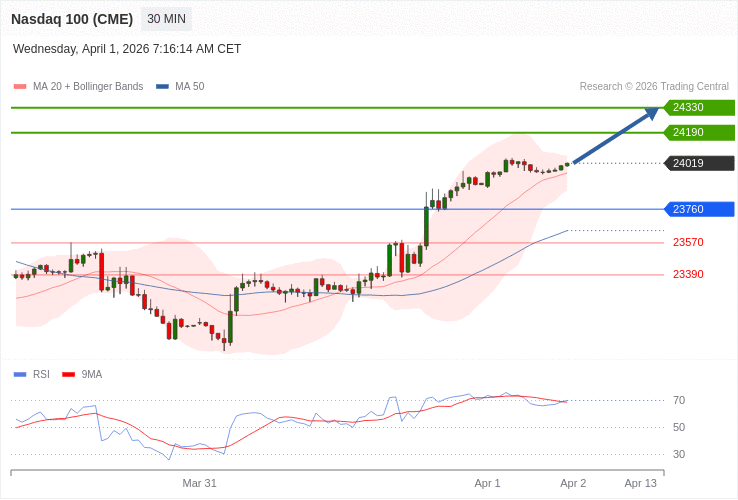 Index NASDAQ 100 (CME) (NQ) - Intradenní výhled 1.4.2026