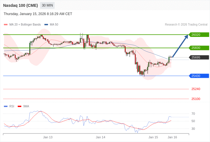 Index NASDAQ 100 (CME) (NQ) - Intradenní výhled 15.1.2026