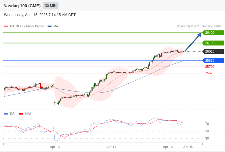 Index NASDAQ 100 (CME) (NQ) - Intradenní výhled 15.4.2026