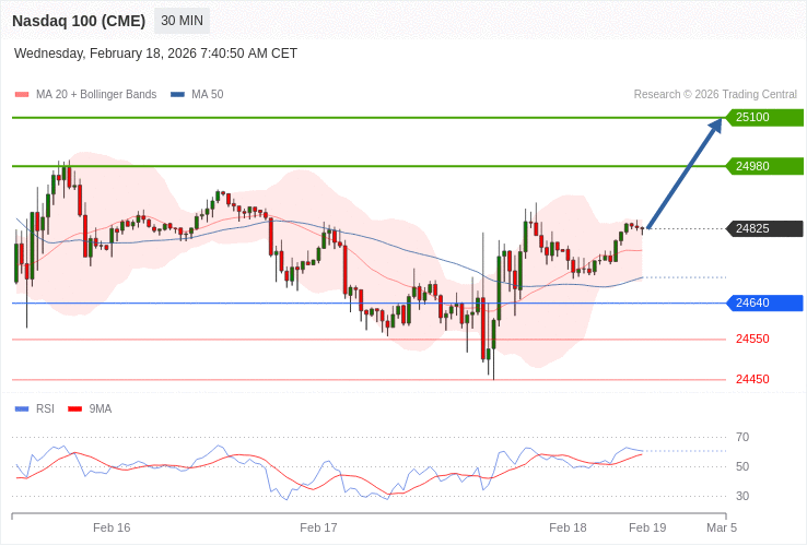 Index NASDAQ 100 (CME) (NQ) - Intradenní výhled 18.2.2026