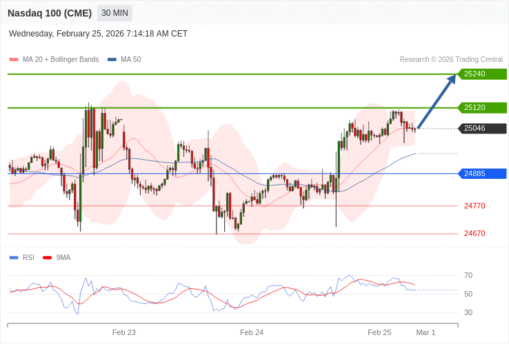 Index NASDAQ 100 (CME) (NQ) - Intradenní výhled 25.2.2026