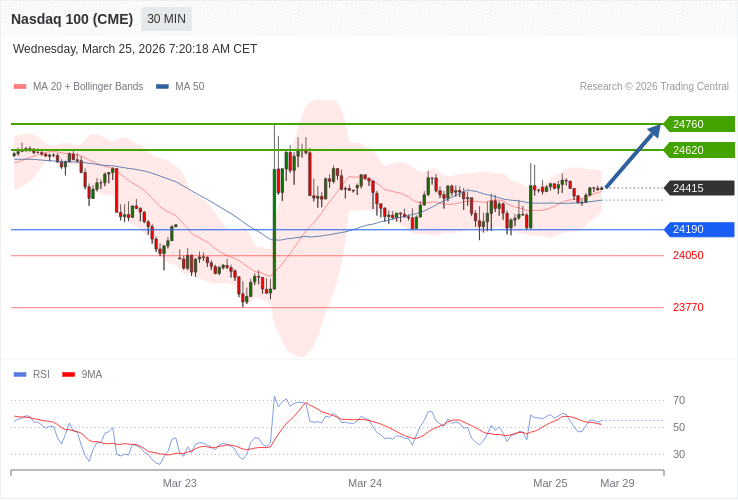 Index NASDAQ 100 (CME) (NQ) - Intradenní výhled 25.3.2026