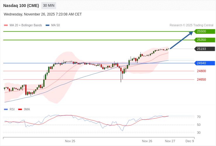 Index NASDAQ 100 (CME) (NQ) - Intradenní výhled 26.11.2025