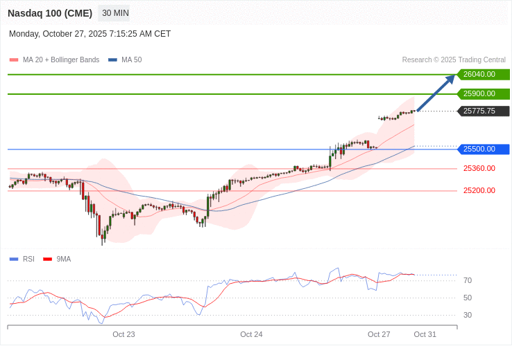 Index NASDAQ 100 (CME) (NQ) - Intradenní výhled 27.10.2025