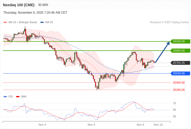 Index NASDAQ 100 (CME) (NQ) - Intradenní výhled 6.11.2025
