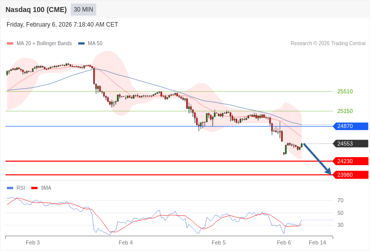 Index NASDAQ 100 (CME) (NQ) - Intradenní výhled 6.2.2026