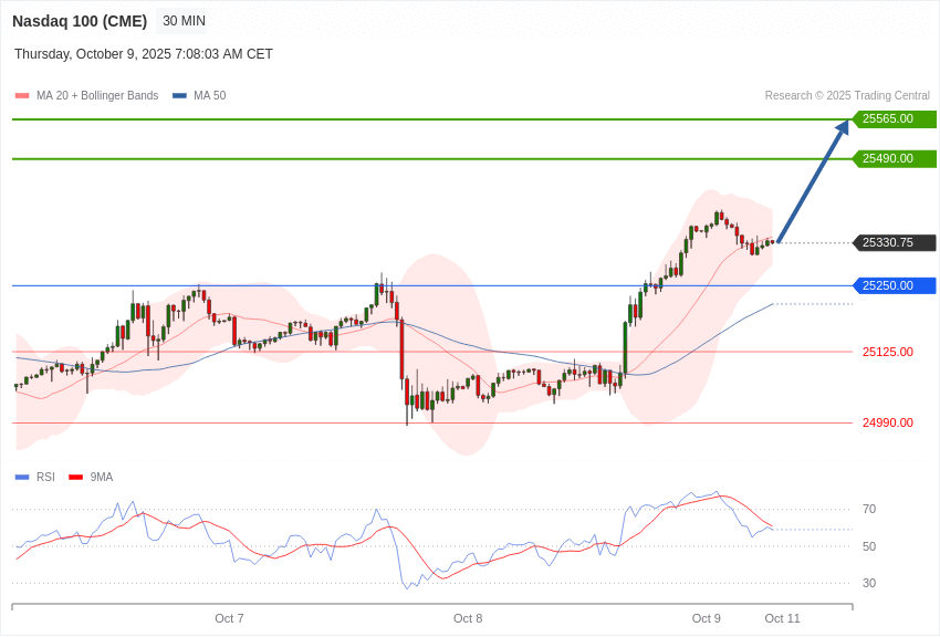 Index NASDAQ 100 (CME) (NQ) - Intradenní výhled 9.10.2025