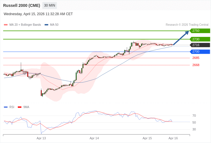 Index Russell 2000 - Intradenní výhled 15.4.2026